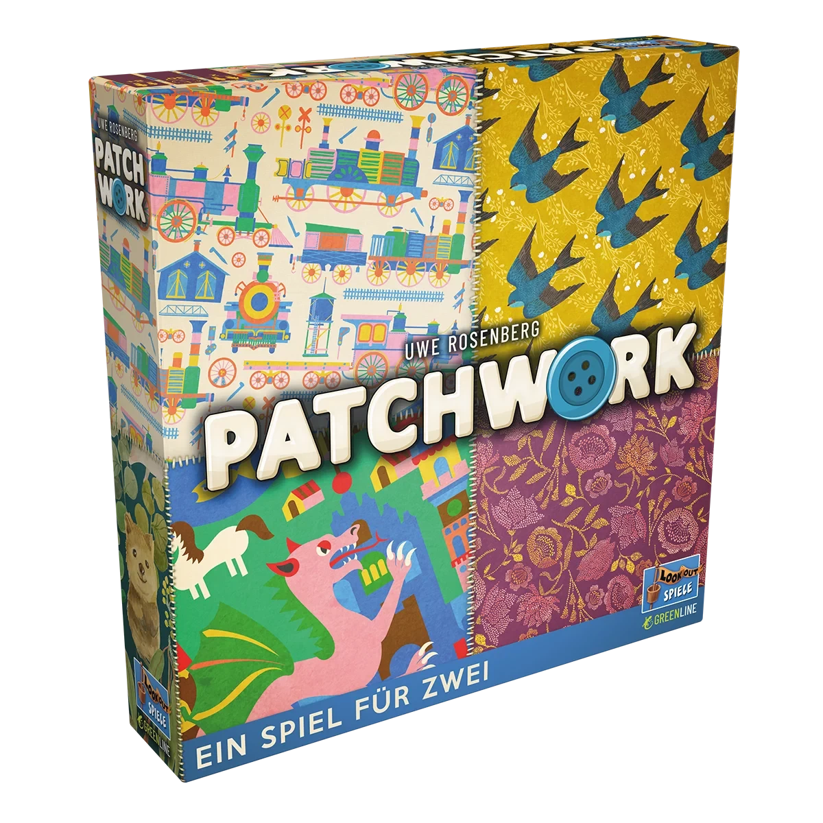 Patchwork ist ein Familienspiel für zwei Spieler, kreiert von Erfolgsautor Uwe Rosenberg, und inzwischen ein internationaler Bestseller. Jede Menge Stoffreste und Lederflicken liegen bereit, um eine tolle Decke zusammenzunähen. Das kostet die Spieler nicht nur Mühe und Zeit, sondern auch mit dem eigenen Vorrat an Knöpfen sollte sparsam umgegangen werden. Wer die Flicken clever auswählt und geschickt kombiniert, kann mit seiner Patchworkdecke den Sieg erringen.