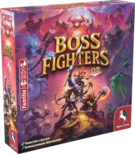 Boss Fighters QR verbindet die klassischen Elemente eines Kartenspiels mit einer App zu einem einzigartigen Spielerlebnis. Die Spielenden treten gemeinsam gegen zehn einzigartige Bosse mit individuellen Stärken und Fähigkeiten an, die taktisch auf die Aktionen der Spielenden reagieren. Dank der Scan & Play Mechanik erfasst die App physische Karten über einen QR-Code auf der Rückseite in Sekundenschnelle und reagiert in Echtzeit auf die Spielzüge – für ein nahtloses Zusammenspiel von strategischem Deckbuilding mit dynamischen Bosskämpfen.