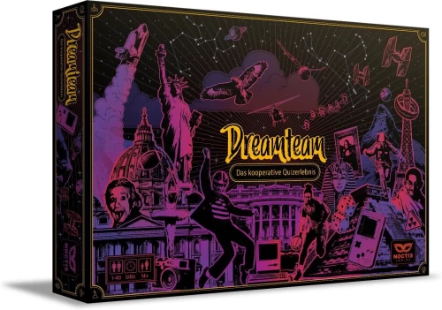 Du kannst Dream Team zusammen gegen das Spiel in drei Schwierigkeitsgraden spielen, oder du forderst deine Freunde und Familie heraus und ihr spielt gegeneinander - 10 spannende Joker machen dieses Gesellschaftsspiel besonders interessant