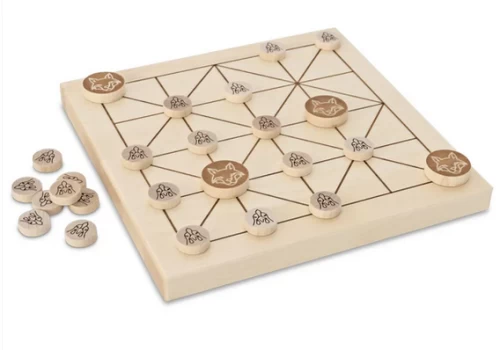 Ein Strategiespiel für 2 Personen. Wird es dem Fuchs gelingen, die Hühner zu besiegen, oder sind diese vielleicht doch schlauer als ihr Feind? Ein spannendes Brettspiel in schöner Holzausführung. Die Schweizer Variante des nepalesischen Nationalspiels BaghChal.