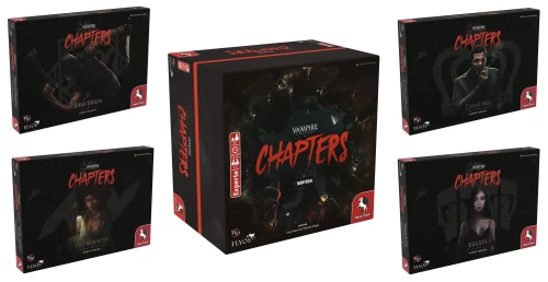 In Vampire: Die Maskerade – CHAPTERS schlüpfen die Spielenden in die Rollen von Vampiren der Camarilla. In über 50 Szenarien müssen sie sich unzähligen Gefahren stellen, Verschwörungen aufdecken und Kämpfe ausfechten. Alle ihre Entscheidungen haben dabei Auswirkungen auf die folgenden Kapitel. Das Spiel ist ein Mix aus (Erzähl-)Rollenspiel und Brettspiel.